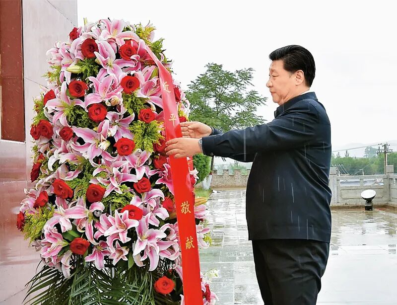 ▲2016年7月18日至20日,中共中央总书记、国家主席、中央军委主席习近平在宁夏调研考察。这是7月18日上午,习近平在固原市西吉县将台堡向红军长征会师纪念碑敬献花篮。